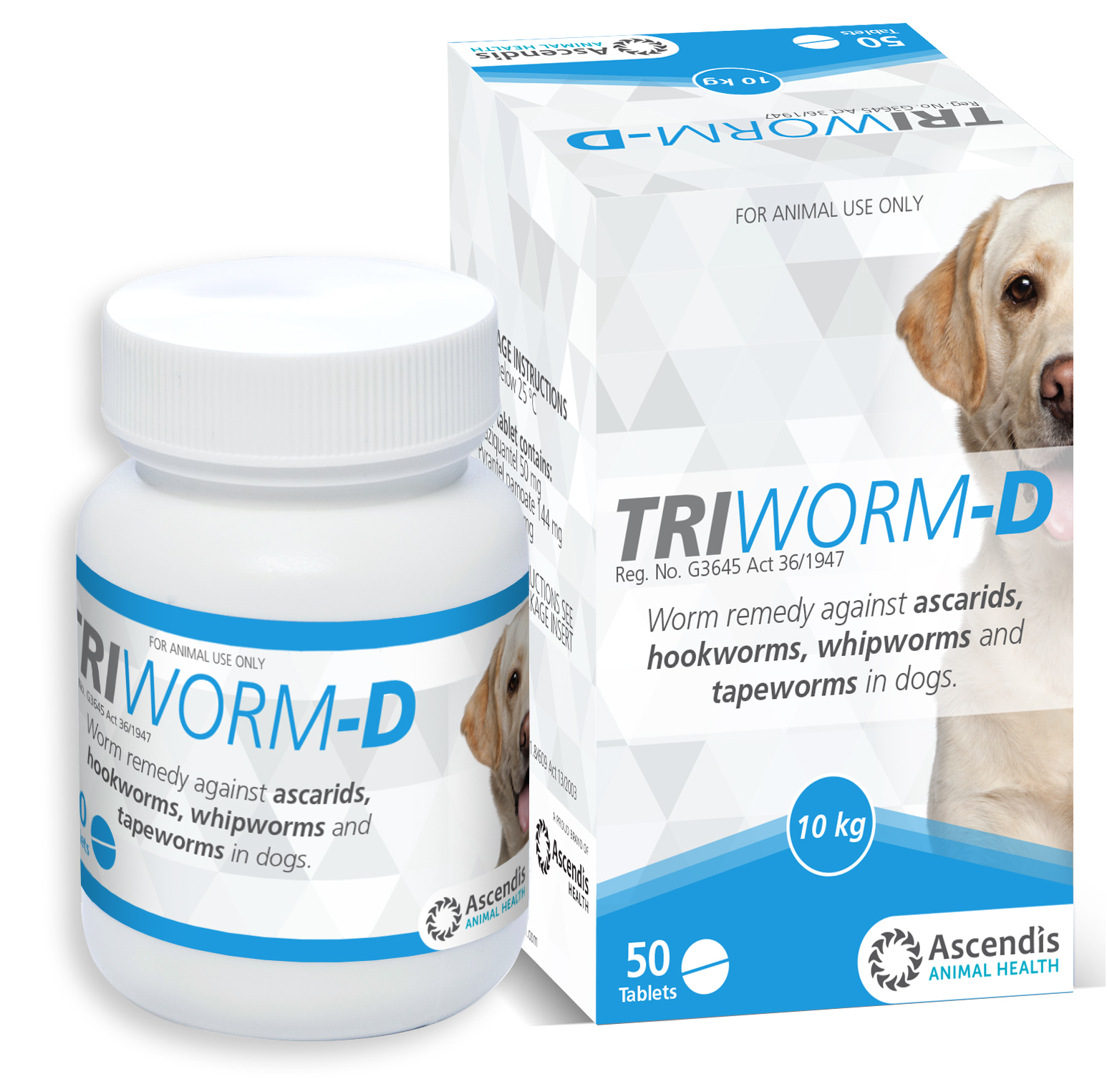 TRIWORM-D: The effective triple combination of active ingredients. Broad Spectrum dewormer with high efficacy with a single dose of 1 tablet/10kg body mass.