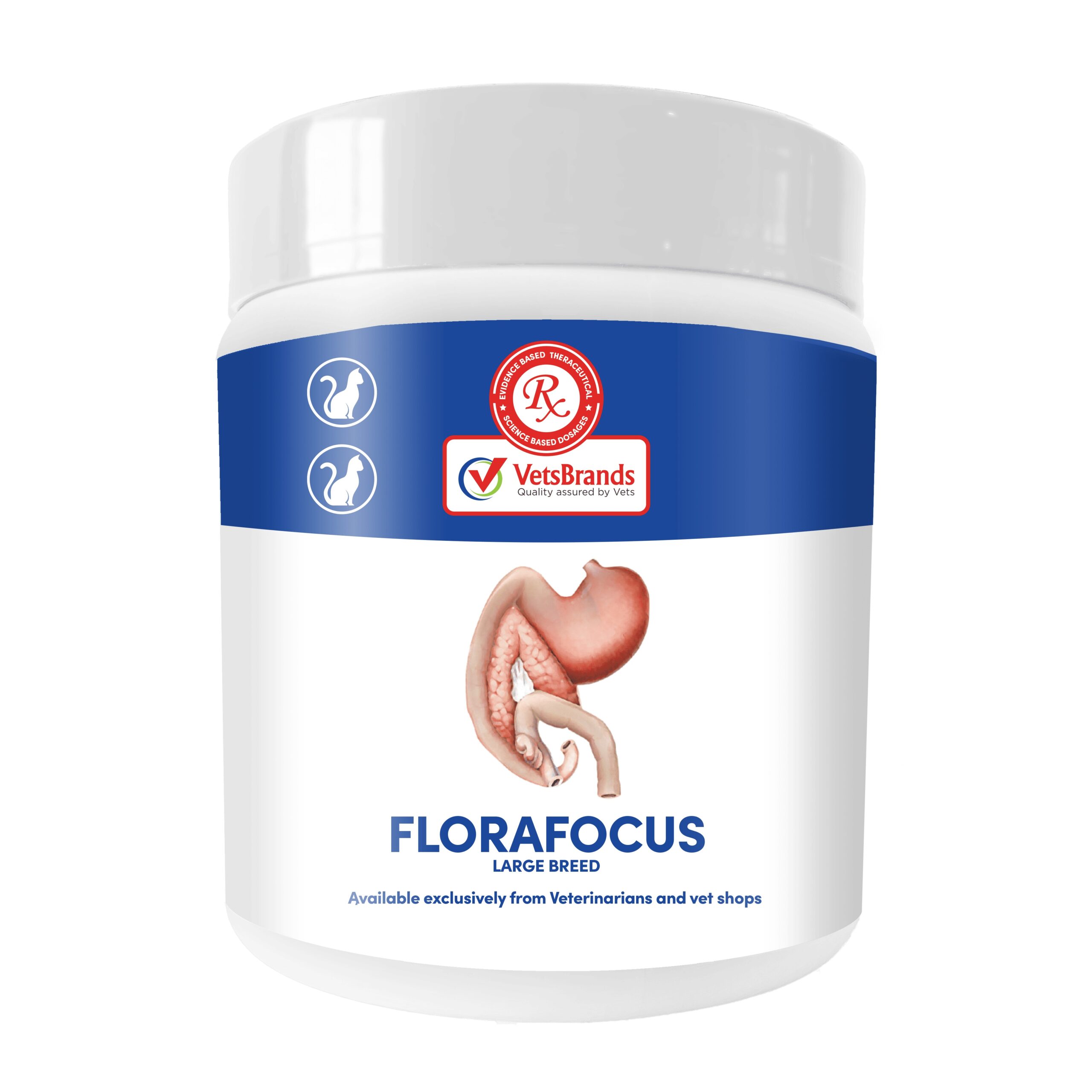 VetsBrands FloraFocus Large Breed is a nutritional pre- and probiotic supplement for dogs and cats, designed to manage dysbiosis and digestive conditions while restoring gut microbiome balance. Featuring a full-spectrum pre- and probiotic blend with Vitamin B12, it includes gastrointestinal immune-modulating agents and moisture-binding action to normalize stools and reduce intestinal permeability. This is a vet-recommended, palatable powder ideal for large breed dogs.